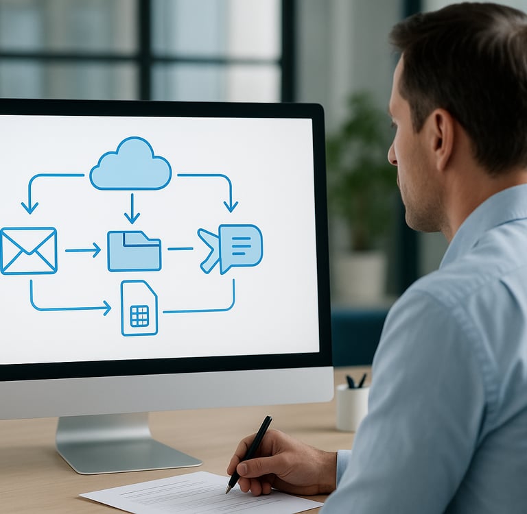 2. Defina ações automáticas (enviar mensagem, mover arquivo, atualizar CRM)